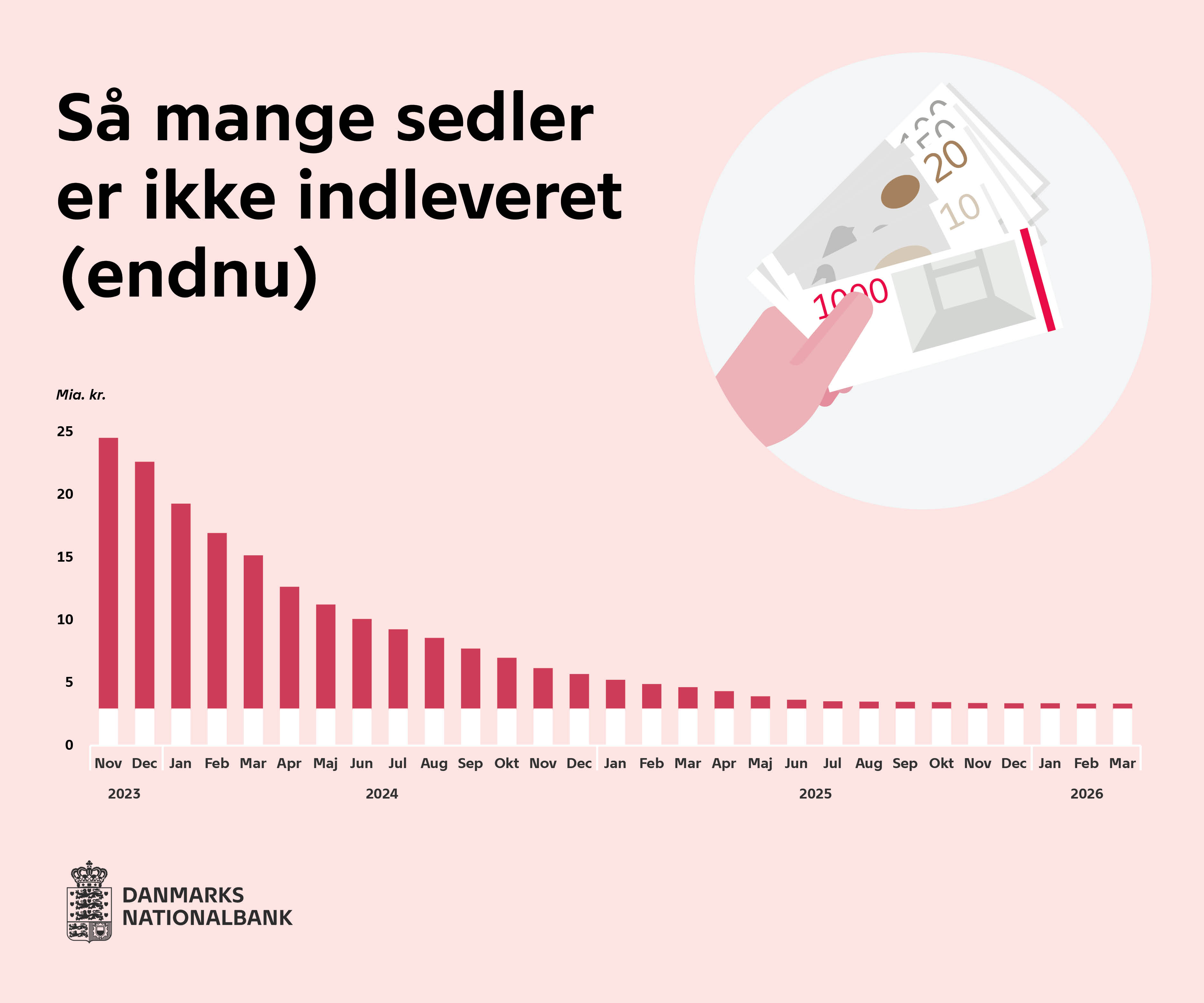 Pressepakken indeholder en lang række fakta om de værdiløse sedler, indleveringen af sedlerne, og baggrunden for, at sedlerne bliver værdiløse.