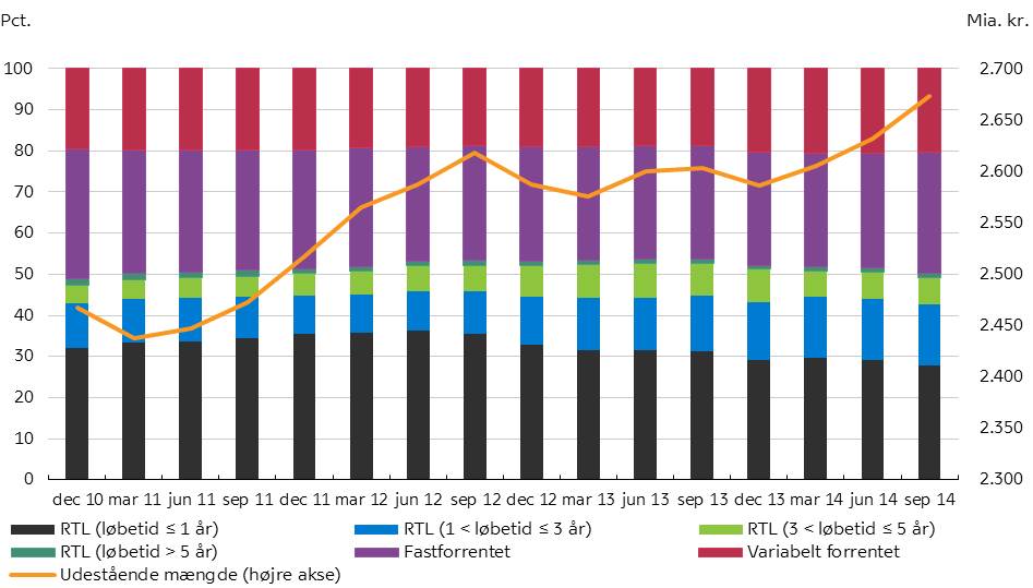 Anm.: RTL = Realkreditobligationer bag rentetilpasningslån. I den cirkulerende mængde af danske realkreditobligationer er der hver kvartalsmåned korrigeret for obligationer, som udløber i den efterfølgende måned. Det gøres for ikke at puste den cirkulerende mængde op i forbindelse med refinansiering.