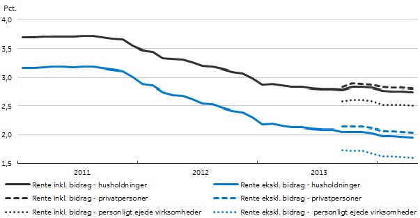 Fra september 2013 er det muligt at opdele husholdningssektoren i privatpersoner og personligt ejede virksomheder. Personligt ejede virksomheder betaler generelt lavere renter og højere bidrag end privatpersoner. Det skyldes hovedsageligt, at personligt ejede virksomheder har en højere andel af lån med kort rentebinding og en lidt lavere andel af lån med afdrag end privatpersoner.