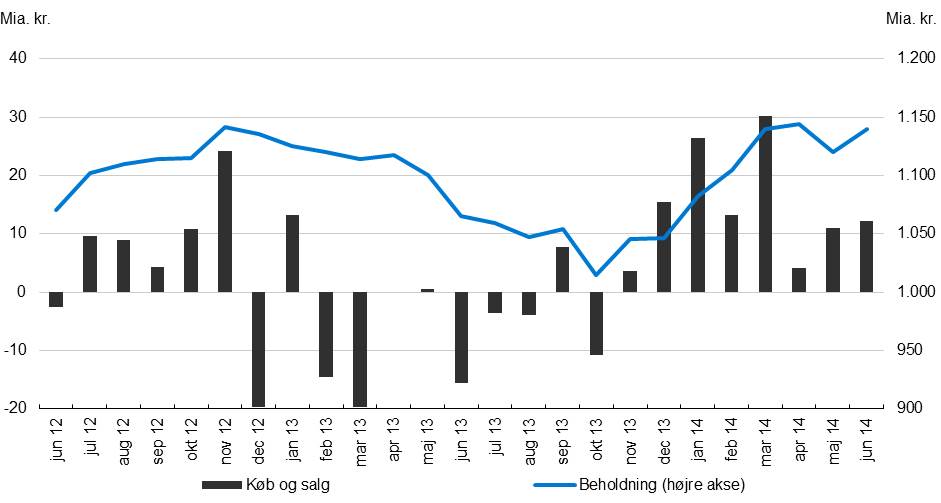 Interessen for udenlandske obligationer har med et samlet køb på 97 mia. kr. været stærk i 1. halvår 2014.