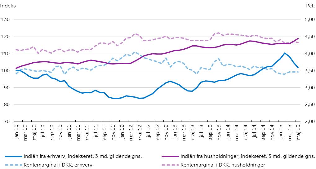 | Indlån fra erhverv og husholdninger samt pengeinstitutternes rentemarginaler |