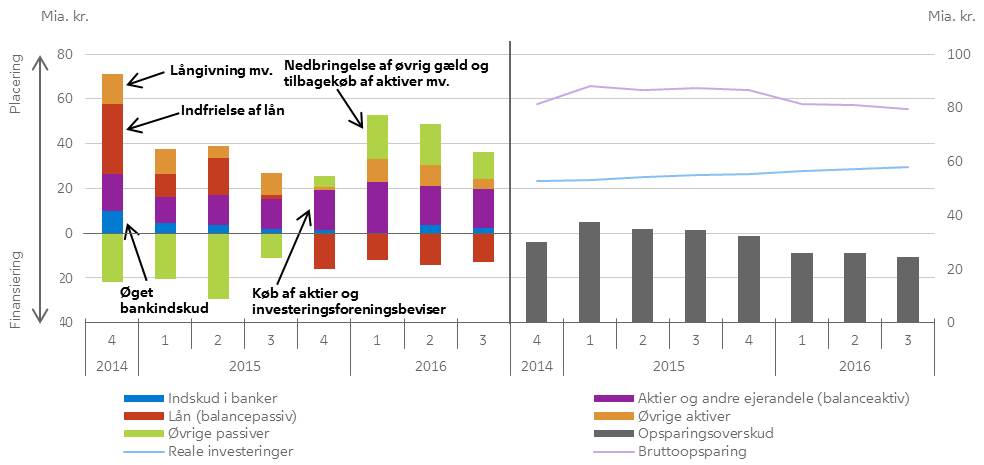 Modsat blev opsparingsoverskuddet i 2014 og dele af 2015 – i kombination med øget låntagning – primært brugt til at tilbagekøbe egne aktier og virksomhedsobligationer samt til kortfristet långivning (typisk koncerninternt).